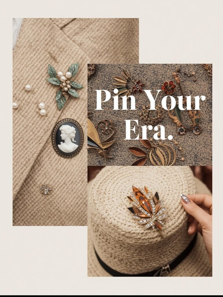 Real-life tip: Use brooches beyond clothing — pin vintage pieces to ribbon bookmarks, modern ones to tote bags or plain hats. They’re portable art that personalizes everything they touch.