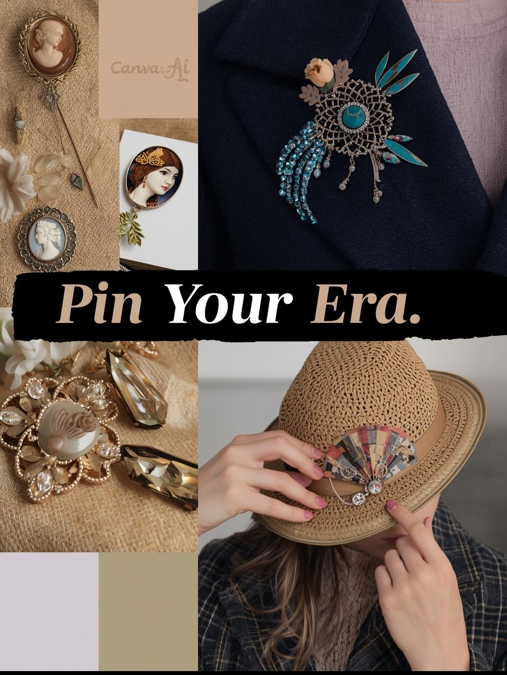 | Mid-Century (1940-1960) | Abstract forms, rhinestones, asymmetry | Color-block acrylic designs | Cluster 3 small pins for curated chaos |