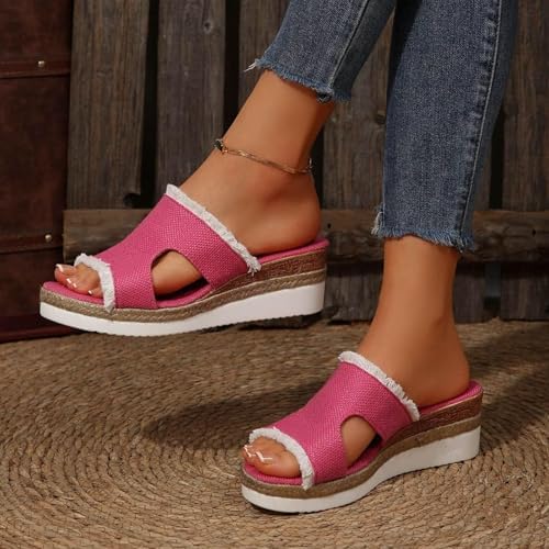 2025 Women’s Platform Wedge Sandals Open Toe Slip-On Cork Slides Wedge Heel Flatform Flip Flops,Beach Slippers Comfortable Summer Shoes Casual Woven Espadrilles Walking Sandals for Women