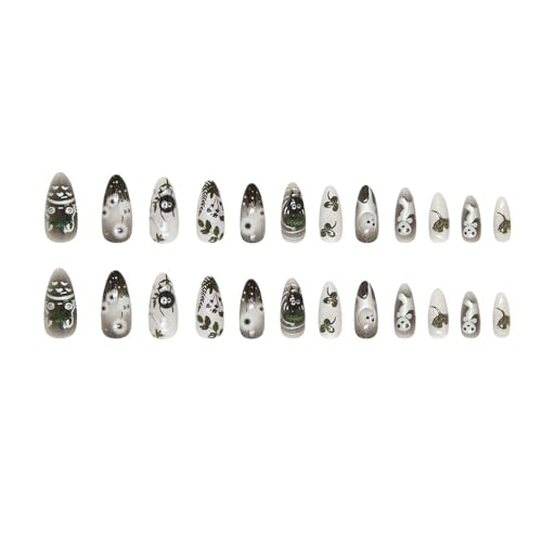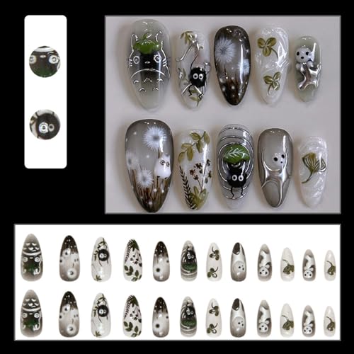 24 Pcs Clear Smudge Press on Nails Short Almond,MINGCHUN Fall Summer Fake Nails Press ons Acrylic Nail Art Tips Kit Full Cover False Nails Glue on Nails with Dandelion Plant Spirit Design for Women