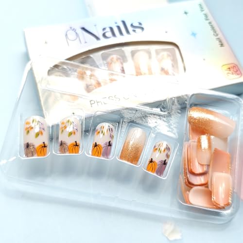 Easy to Apply: Just polish your nails,and choose the right nail size,apply nail glue,and then press for 30 seconds to get your favorite maple leaf pumpkin false nails.