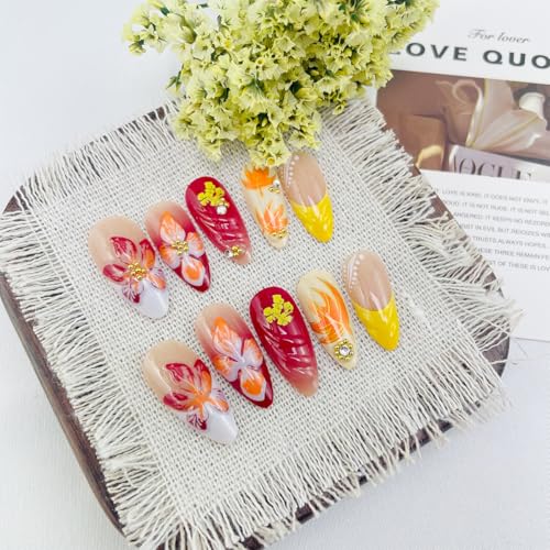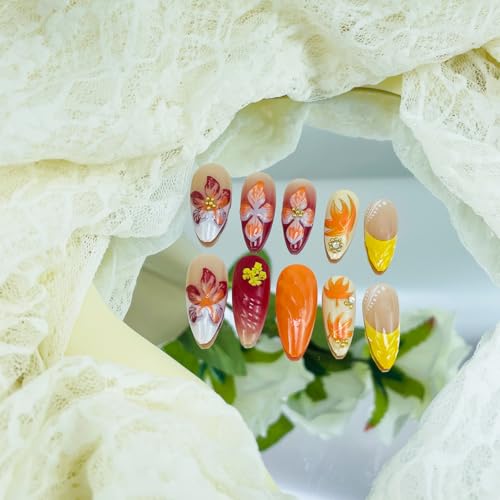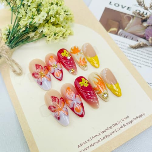 Premium Material: Our 3d fall flower artificial stick on nails, are made of durable acrylic material, ensuring long-lasting wear and resistance to damage. Perfect for fall Thanksgiving manicure art decorations.
