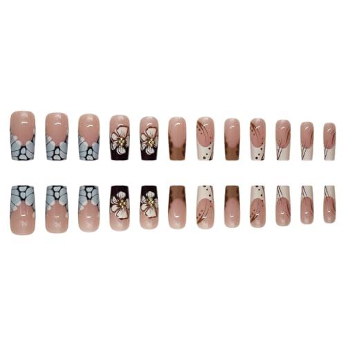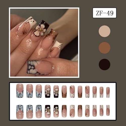 Fall Medium press on nails square fake nails flower press on nails with cute designs press on nails for women girls fall winter DIY art