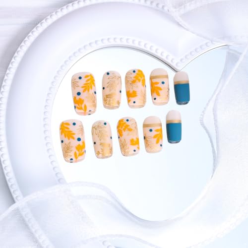 Easy to Apply:Full cover Autumn short square press on nails set are instead of spend lots time, you can change you nails style in 15 min .Clean your nails before use and avoid using water for the first hour after wearing them ,maple leaves glue on nails will stay longer