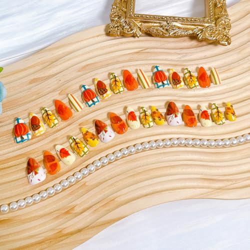 Fall leaves Designs for Every Style: Featuring of pumpkin patterns, these artificial nails add a touch of elegance to any look. Perfect for expressing your unique personality