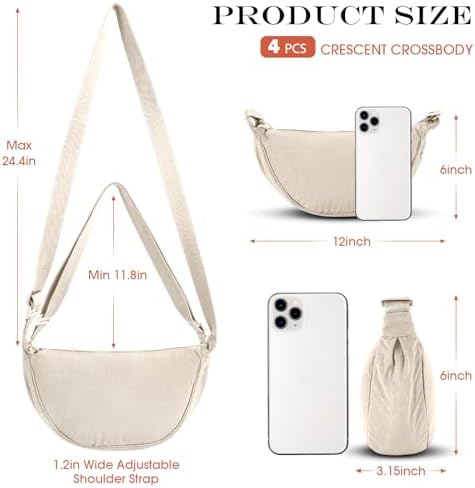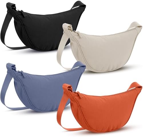 4 Pcs Nylon Crescent Crossbody Purses Bag for Women Men Half Moon Shape Sling Travel Bag Crescent Shoulder(Classic Colors)