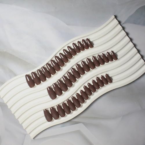 48Pcs Dark Coffee Brown Press on Nails Almond Fake Nails Glue on Nails Medium Length Almond Shaped Nails Press ons, Stiletto Nails False Nails for Women, Thick Medium Almond Nails Acrylic Gel Nail