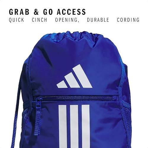 The adidas Alliance Sackpack (12L) is a versatile drawstring backpack designed for athletes and fitness enthusiasts. This lightweight athletic small drawstring bag is perfect as a gym bag or a convenient mini gym bag. Its classic design adapts easily for various uses. Crafted for sports and travel, it serves as an ideal sneaker bag for travel, easily transforming into a sport backpack or a gym drawstring bag. The bag features drop mesh water bottle pockets, making it a reliable sports bag for men and women or a gym bag small for quick trips. The easy cinch opening with durable cording straps allows quick access, while the zippered exterior pocket is perfect for holding your phone or other small essentials. Whether you need a small travel bag, basketball backpack for boys, soccer backpack for girls, or an adidas backpack for men, this string backpack combines functionality and style effortlessly.