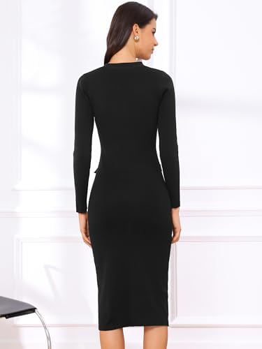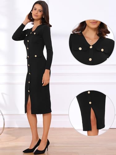 Allegra K Bodycon Sweater Dress for Women’s 2025 V Neck Long Sleeve Button Decor Knit Midi Dress