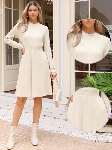 Allegra K Long Sleeve Dress for Women’s Fall 2025 Crew Neck Ribbed Knit Textured Sweater Casual Dresses