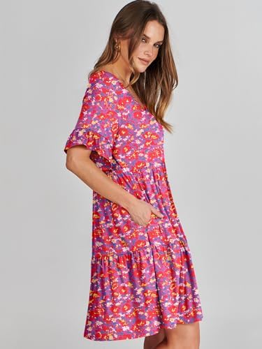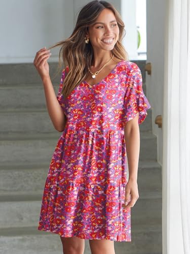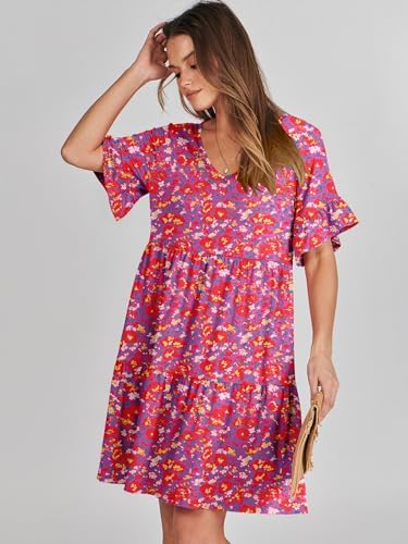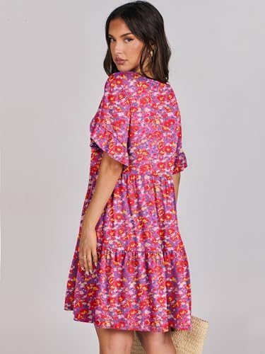 ANRABESS V Neck Ruffle Short Sleeve A Line Tiered Summer Mini Dress for Women