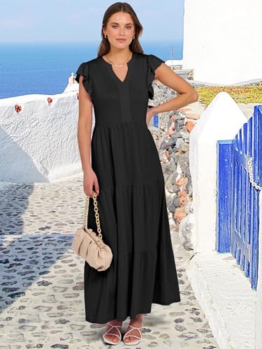 ANRABESS Womens Summer Casual Maxi Dress V Neck Ruffle Sleeve Long Dresses Fashion Flowy Tiered Boho Beach Vacation Sundress