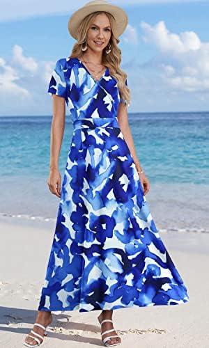 AUSELILY Maxi Dresses for Women Ankle Length Floral Print Beach Long Flowy Dress with Pockets