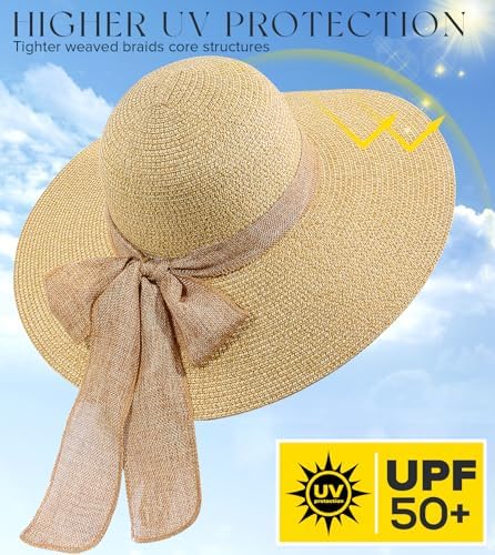 Beach Hats for Women, Straw Sun Hat with Wide Brim, Summer Floppy Beach Hats for Women, Packable Floppy Straw Garden Hat