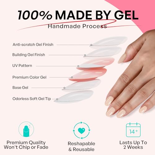 【High-Quality PMMA Nails Press Ons】GJZEZ Nude press on nails short are made of strong PMMA material. Not easy to chip or fade, and softness is similar to human nails, Providing a more comfortable wearing experience than rough ABS glue on nails. Whether it’s a whisper of pastel, a chic “bubble bath” nude, the key is subtlety. The perfect barely-there trendy manicure is sophisticated, work-appropriate and can be easily jazzed up for happy hour.