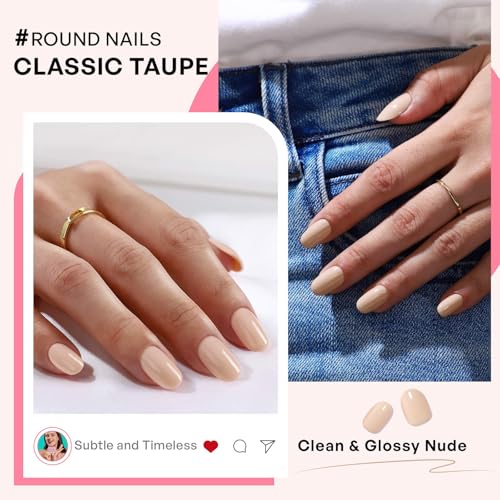 Beige Fall Press on Nails Short – GJZEZ Soft Gel Thanksgiving Round Fake Nail, Salon-Level & Natural Fit Handmade Glue on False Nail | 16 Sizes – 32 pcs Reusable Artificial Nails, Hazelnut Latte