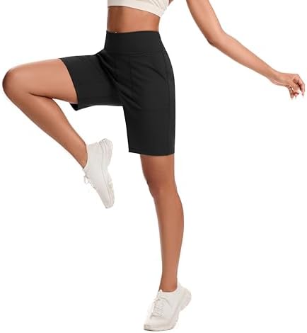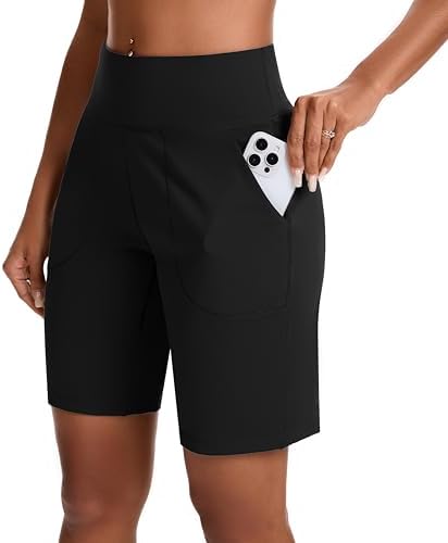 Bermuda Shorts for Women with Zipper Pocket Womens High Waisted Long Shorts for Running Workout Athletic