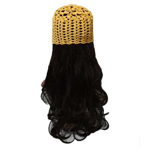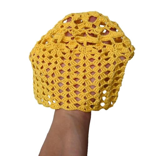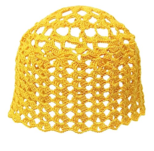 BIBITIME Lightweight Lace Crochet Skull Cap Women Beanie Summer Beach Headgear Hollow Handmade Knitted Hat (Large for Adult, Yellow)