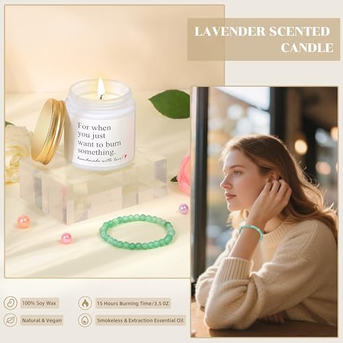 Monogram Tote Bag for Women: The spacious 15.7″ x 11.6 x 5.3″ canvas tote bag boasts reinforced stitching to resist fading and tearing, while the cosmetic bag features a sturdy zipper for daily use. The included soy wax candle offers a clean burn with over 40 hours of lifespan with lavender scent. A green stone bracelet with natural stone beads on an adjustable elastic cord and ultra-soft cozy socks adding comfort and versatility.