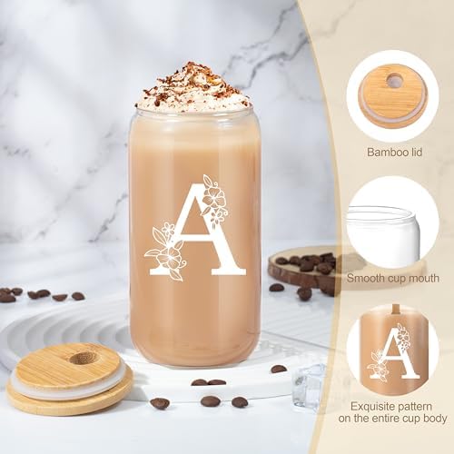 Birthday Gifts for Women, Monogrammed Initial Gift for Teacher Wife Mom, Tote Bag,Glass Cup Gift Basket Personalized Christmas Mother’s Teacher Appreciation Day,A
