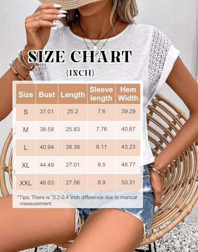 Bliwov Womens Tops Lace Cap Sleeve T Shirts Casual Trendy Cute Summer Spring Outfits Plus Size Beach Vacation Fashion Clothes