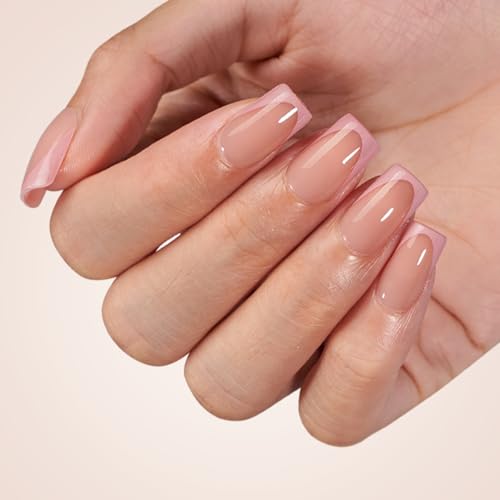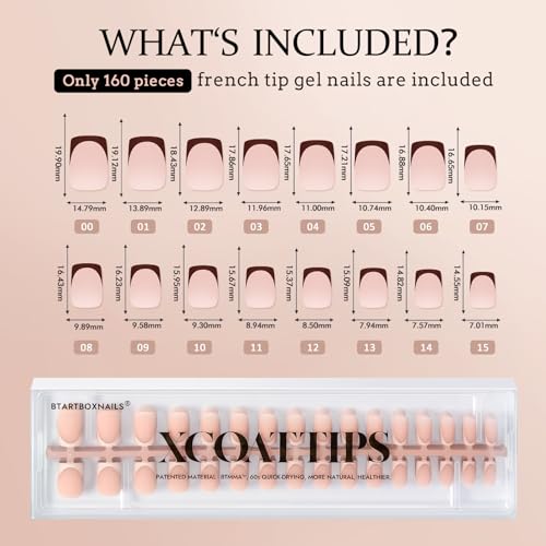 BTArtboxnails XCOATTIPS French Tip Press on Nails – Fall Fake Nail Short Square Nail Tips, Skin Tones Soft Gel Nails False Nail, Soak Off Acrylic Nails Extensions