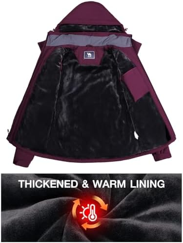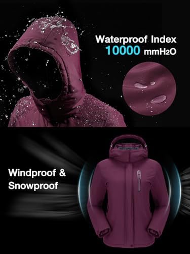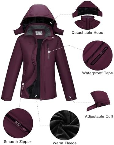 CAMEL CROWN Women’s Winter Coats Hooded Ski Jacket Warm Fleece Waterproof Snowboard Jacket Windproof Windbreaker