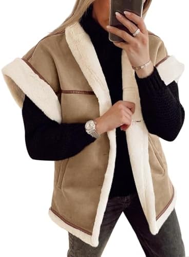 Be the first to review “Cicy Bell Womens Suede Sherpa Vest Faux Fur Shearling Jacket Oversized Cap Sleeve Button Down Winter Coats”