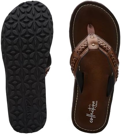 A carefree summer flip-flop with clarks collection aesthetics and comfort. made with honey synthetic straps with hardware accents, it pampers the foot with soft textile linings, a burnished eva footbed with cushion soft layers, and a tpr traction outsole. looks great with jeans, shorts or swimwear.