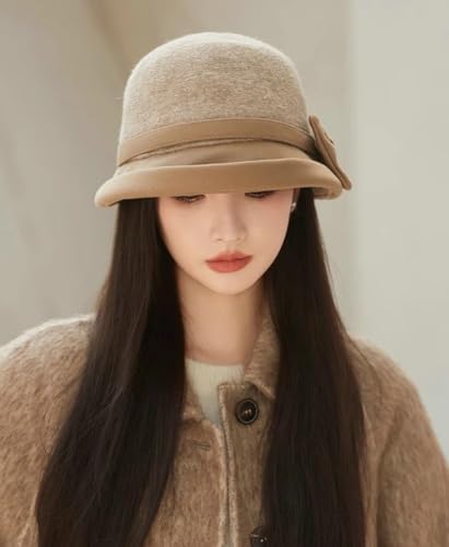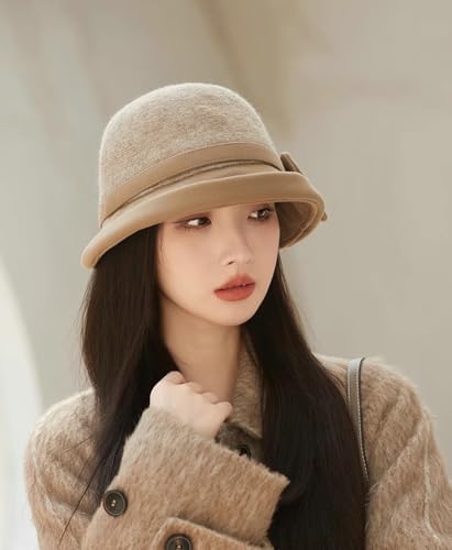 Classic Felt Fedora Hat for Women 2025 Fall Winter Soft Elegant Bow Bucket Hat Cozy Short Brim Cap 2025