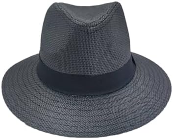 Classic Flat Wide Brim Straw Hat Panama Fedora Hat Safari Sun Protection Hat UPF50+ for Women and Men