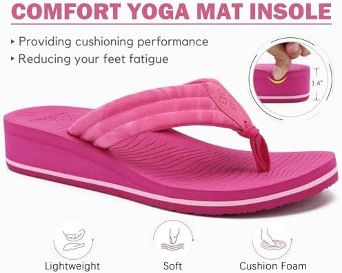 COFACE Women’s Flip Flops with Arch Support Ladies Fashion Lightweight Wedge Flip Flops Comfortable Yoga Mat Sole Summer Platform Thong Sandals