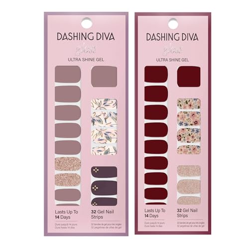 Dashing Diva Gloss Nail Strips Bundle – The Fall Florals Collection – Alpine Retreat & Wildflower – UV Free, Chip Resistant, Long Lasting Gel Stickers – Contains 2 Sets