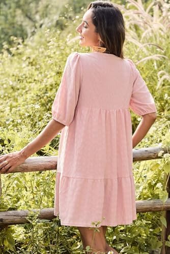 Dokotoo Summer Dresses for Women 2025 Short Sleeve Crewneck Embroidered Dresses