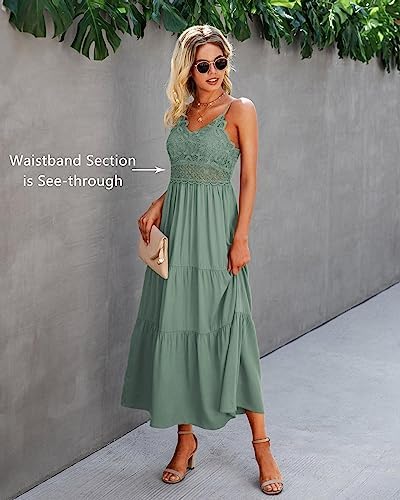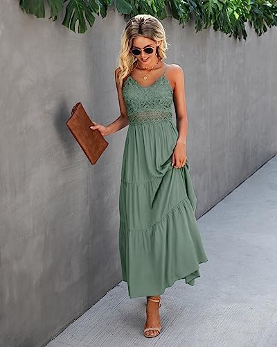 Dokuritu Women’s Beach Crochet Lace Maxi Dress Solid Color Summer Vacation Spaghetti Strap Long Dress 2024