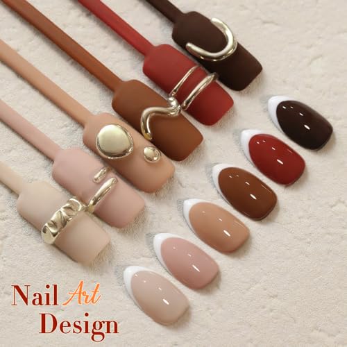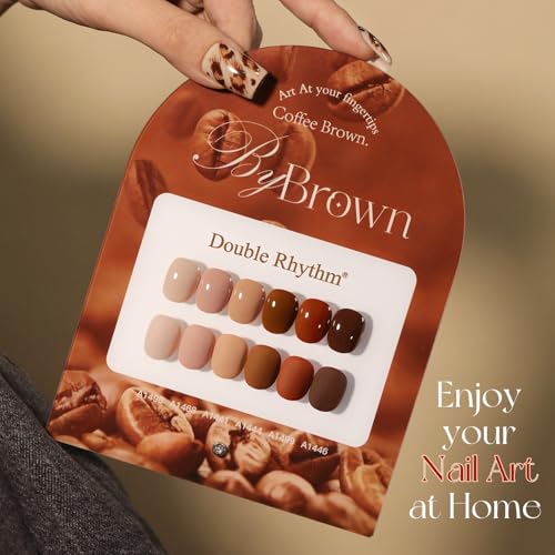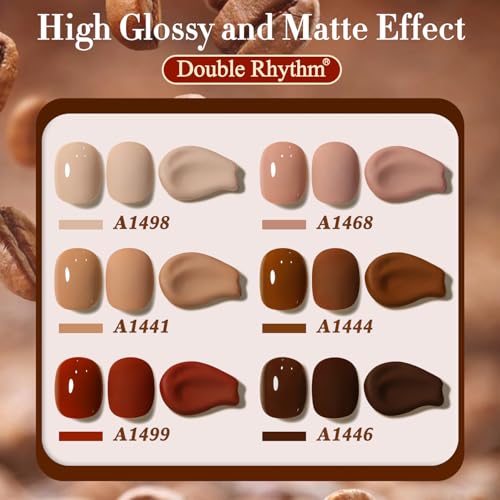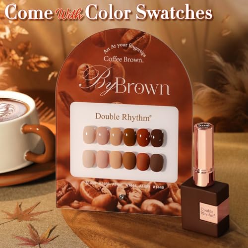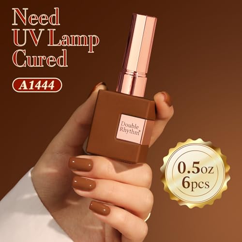 Double Rhythm 6 Pcs 15 ML Gel Polish Set Same Color Same Bottle Soak Off Gel Polish Kit Nail Art Manicure Salon DIY at Home for Women (Coffee Brown Nude Red Beige Pink-T6-5)