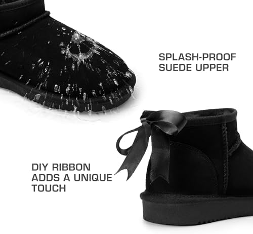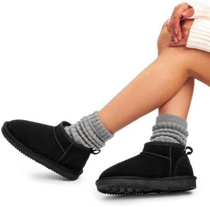 DREAM PAIRS Ankle Winter Mini Boots for Women Genuine Suede Faux Fur Lining Water Resistant Warm Snow Boots Slip On Memory Foam Comfort Booties FuzzyClassic