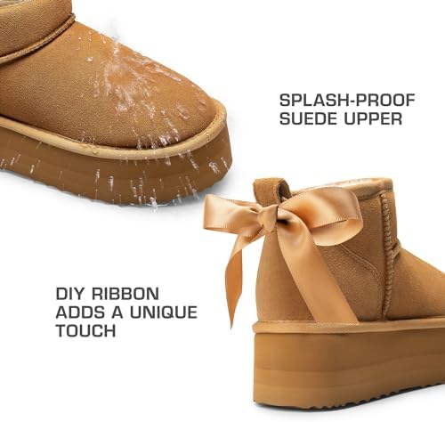 DREAM PAIRS FuzzyClassic Platform Mini Boots for Women Suede Genuine Leather, Classic Winter Ankle Snow Boots with Memory Foam Insole Lightweight Anti-Slip Outsole Outdoor