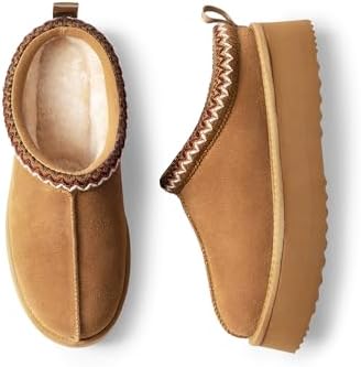 DREAM PAIRS Women’s Slippers for Women Genuine Suede Platform Cozy FuzzyEasy Women’s Platform Slip-on Slippers Winter Fluffy Warm Comfy Furry Shoes for Outdoor Indoor House