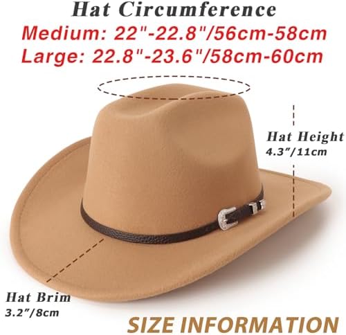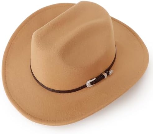 DRESHOW Classic Western Felt Cowboy Cowgirl Hat for Women Men Outdoor Wide Brim Belt Buckle Panama Hat Unisex Rolled up Caps