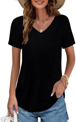 Elesomo Womens T Shirts V Neck Summer Short/Long Sleeve Cotton Tops Tees