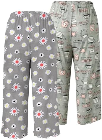 ENJOYNIGHT 2 Pack Women’s Capri Pajama Pants Lounge Sleep Bottom with Pockets