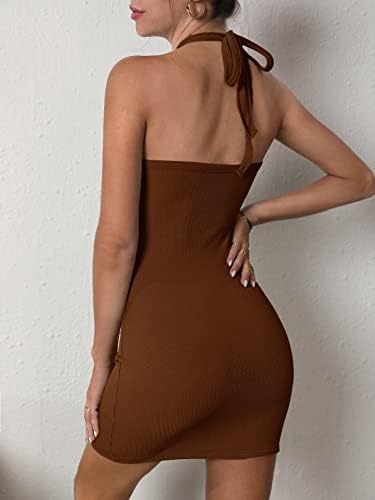 EUPLI Women’s Dress Halterneck Tied Backless Cut-Out Bodycon Dress Women’s Dress AIEBO(Coffee Brown,Large)