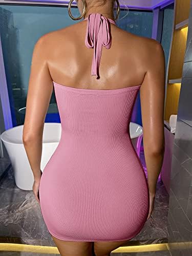 EUPLI Women’s Dress Halterneck Tied Backless Cut-Out Bodycon Dress Women’s Dress AIEBO(Pink,Small)