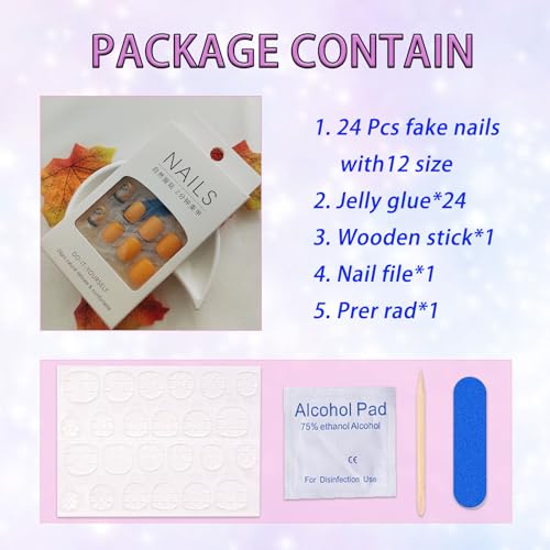What’s Include: 12 nail sizes 24 thanksgiving fake nails ensure a totally custom fit, plus we give you everything needed just in case! Each set comes complete with a storage box, adhesive tabs, double-sided nail file, cuticle stick, and prep pad.