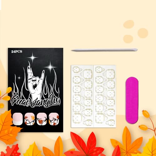 Easy to Use: Instead of spend lots time and money at nail salon, you can change you nails style in 15 minutes anytime and anywhere. The maple leaves fake nails will stay longer if you clean your nails before use, and avoid water within the first hour of wearing