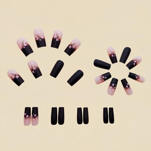 Be the first to review “Fall Press on Nails Medium Fake Nails Pink Black Gradient Square Press on Nails Coffin Glossy False Nails with Pink Flowers Designs Full Cover Acrylic Nails Glue on Stick on Nails for Women 24PCS”