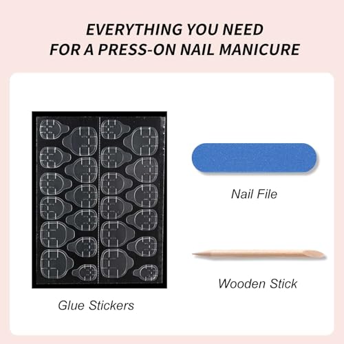 Tips:Nail adhesive tabs doesn’t last as long as liquid glue.If you want maintain for a longer period of time, please use your own nail glue instead of nail adhesive tabs. Due to transportation reasons, the package does not contain glue