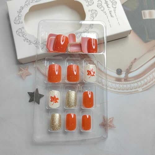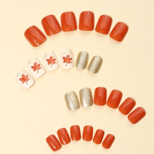 Gift :Reusable maple leaves press on nails short nails design set are the fine gift for women and girls.You can give it to your mother, girlfriend or sister and other people your love. Suitable for various holidays and anniversaries, etc