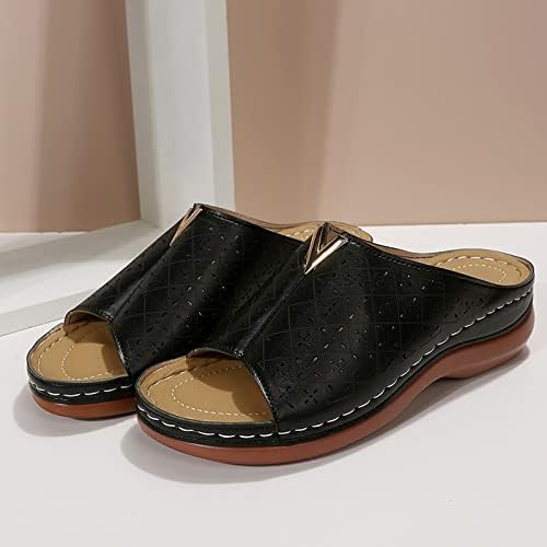 Fashion Women Summer Solid Wedges Breathable Slip On Open Toe Sandals Comfortable Slip on Sandals for Women Wide Width